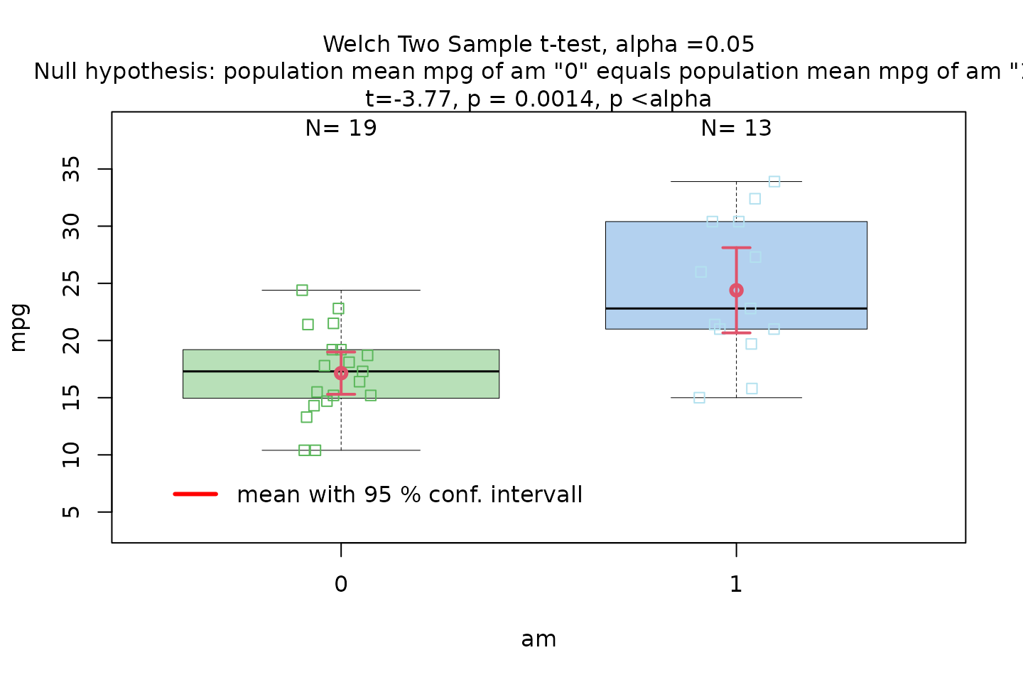 The tailored visual outputs—annotated with test results and, where appropriate, assumption checks and post-hoc analyses—further support comprehension and help ensure valid conclusions from the outset. The package is particularly valuable in statistical consulting for student research projects, where time constraints demand streamlined, assumption-aware output that prioritises interpretation over technical execution. The implemented tests cover the typical content of an introductory undergraduate course in statistics.